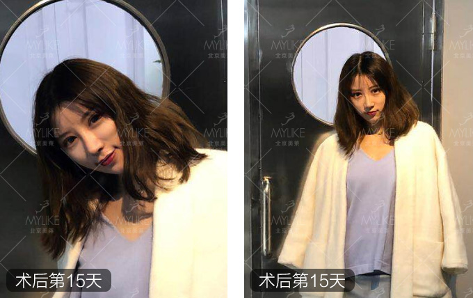第十五天,拆線一個星期了今天去復(fù)查一下去了醫(yī)院王主任親自給復(fù)查的說鼻子恢復(fù)的挺好的等慢慢吸收以后會更好看!我自己也覺得自己的鼻子比以前好看太多了,沒有剛做完那么腫了,效果也更好看了,而且傷口都不怎么明顯,鼻子的形狀也是很好看的而且很自然。