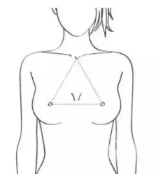 正面:鎖骨和乳頭成等邊三角形較美
