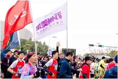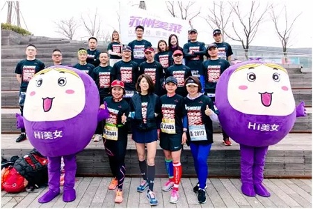 二十多名穿著“蘇州美萊”、“以美為悅,因美而來”、“2019美萊寵愛女神計劃”等字樣的黑色T恤方陣的運動健將奔跑在賽道上,無疑成為了今天蘇州較靚麗一道的風景線,沿途所有參賽選手和圍觀群眾無不矚目。這支“蘇州美萊潮跑團”是由蘇州美萊美容醫(yī)院公益發(fā)起,短短幾天就有二十多名來自各地的外企高管報名參加。