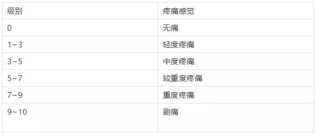 開始來為大家科普一下醫(yī)學(xué)界疼痛的等級: