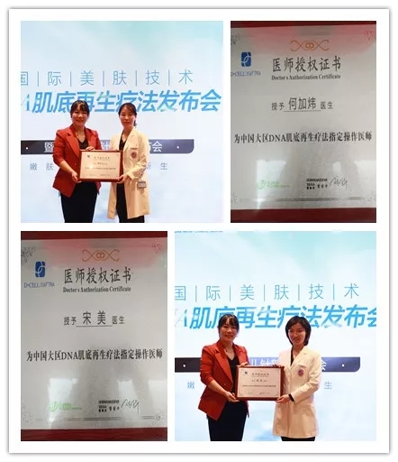 長(zhǎng)沙美萊皮膚科何加煒主任、黃迎玉主任、宋美醫(yī)師、周歡醫(yī)師還獲得中國(guó)大區(qū)DNA肌底再生療法指定操作醫(yī)師授權(quán)認(rèn)證。這也意味著,長(zhǎng)沙美萊整個(gè)博士級(jí)醫(yī)師團(tuán)成為中國(guó)掌握DNA肌底再生療法技術(shù)的美膚醫(yī)師團(tuán)。