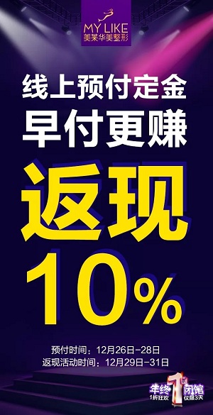 12月26日起,預(yù)交定金300元,可在12月29日-31日期間享受全項(xiàng)目消費(fèi)抵扣和現(xiàn)金返現(xiàn)
