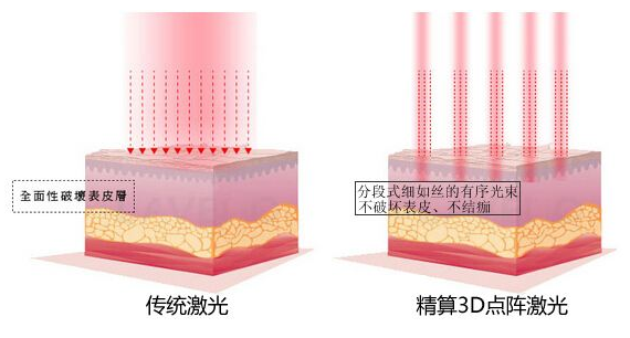 1、不傷害皮膚。點陣激光采用點陣發(fā)射模式,點對點的對皮膚進(jìn)行嫩膚治療,不用擔(dān)心傷害皮膚或色素沉淀問題。